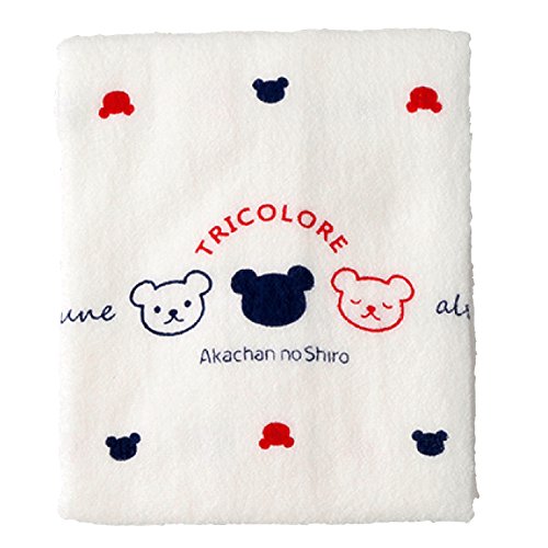 - 可愛いクマさんがトリコロールカラーでデザインされたバスタオル。今治産で無撚糸を使用していますので、肌触りもふわふわです。