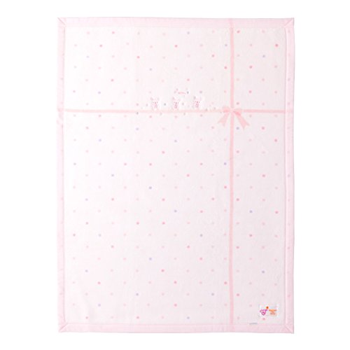 シンプルな水玉柄に可愛らしいどうぶつの刺繍が入った綿毛布です。優しい色づかいは赤ちゃんの笑顔によく似合います。