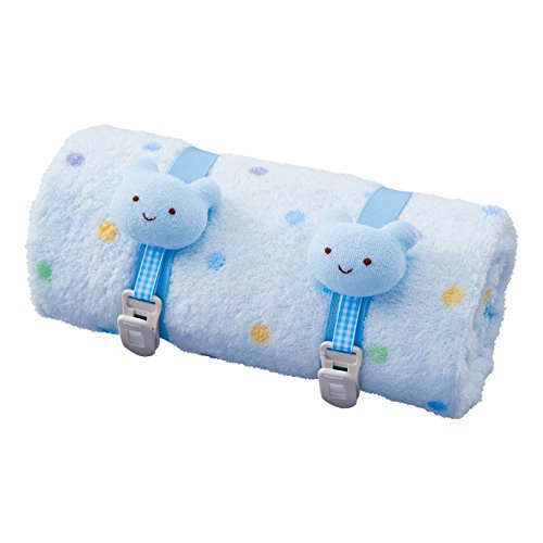 ベビーカーやカーシートをお使いの時、やさしく赤ちゃんに掛けてあげて下さい。鈴の入ったかわいいマスコットの付いたケットクリップがセットになっているので、コンパクトにまとめることができます。