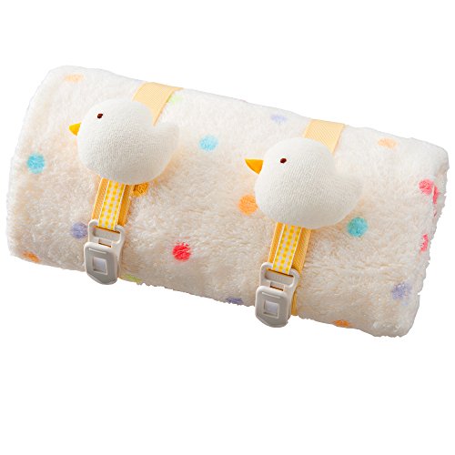 ベビーカーやカーシートをお使いの時、やさしく赤ちゃんに掛けてあげて下さい。鈴の入ったかわいいマスコットの付いたケットクリップがセットになっているので、コンパクトにまとめることができます。