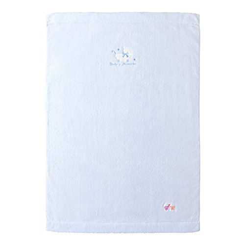 - やさしい色の無撚糸タオルにかわいらしい乳母車の刺繍を付けました。シンプルなふわふわのタオルケットです。
