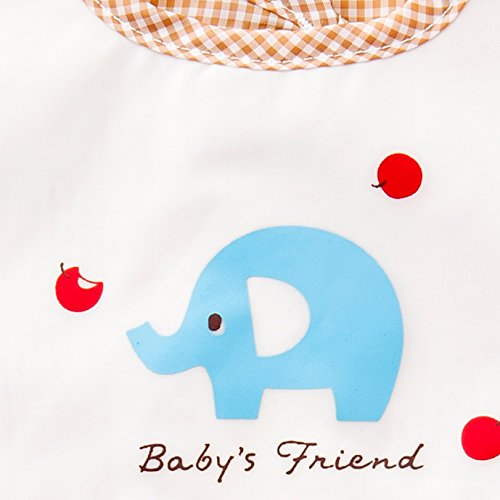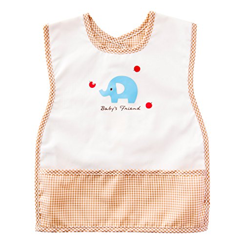 - ぞうさん柄のプリントがかわいいお食事用エプロンです。ポケット付きで食べこぼしをキャッチ。