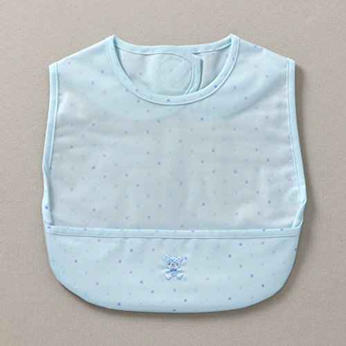 - パステルカラーがかわいい水玉柄のお食事用エプロンです。ポケット付きで食べこぼしをキャッチ。