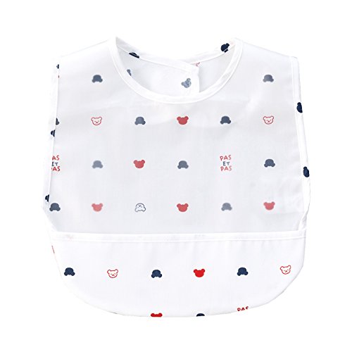 - トリコロールカラーのくまさん柄がかわいいお食事用エプロンです。ポケット付きで食べこぼしをキャッチ。