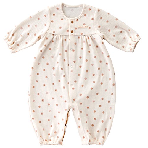- やわらかな水玉模様の中に、幸せを呼ぶクローバーが描かれたナチュラルな柄です。2枚の生地を合わせた接結素材は、空気を含んでふんわりやわらかく暖かいので、秋冬シーズンに最適です。やわらかなオーガニックコットンは肌への刺激が少なく、赤ちゃんのデリケートな肌にもやさしい素材です。生まれてすぐはすっぽり足を包むドレスタイプ。足がばたばたできるようになったらボタンを留め替えてカバーオールタイプにもなるツーウェイ仕様です。