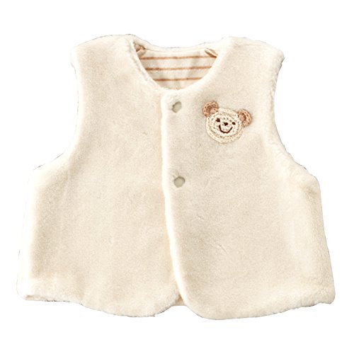 オーガニックコットン100%の、肌にも地球にもやさしいファー素材のベストです。胸元ではにっこり笑顔のクマさんモチーフが、今日も赤ちゃんを見守っています。肌寒い時期のお出かけ着としてご活用ください。