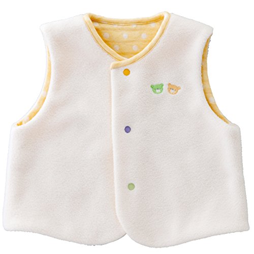 • リバーシブルタイプのカラフルなベスト。シンプルな水玉柄をひっくり返せば可愛いくまちゃんたちが顔を出します。接結とフリースの2枚合わせになっているので、軽いのにとってもあったか。肌寒い時期のお出掛け着としてご活用ください。