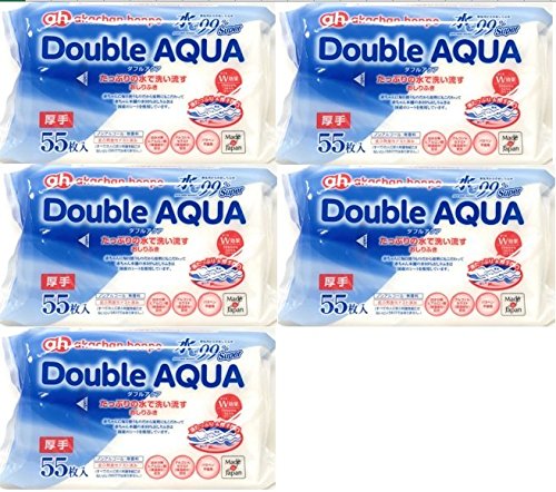 Super Double AQUA(ダブルアクア) たっぷりの水で洗い流すおしりふき 55枚×5個 厚手タイプ