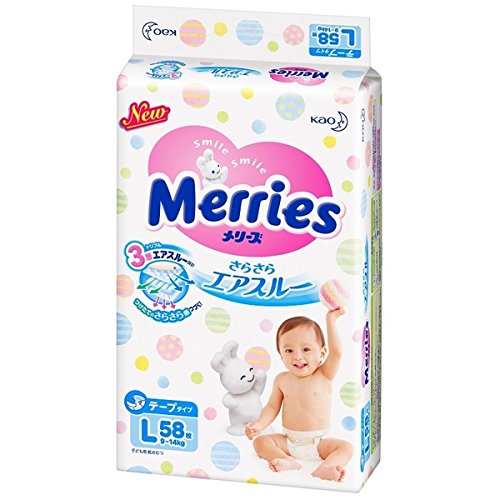【新】花王 メリーズテープ式 さらさらエアスルー Lサイズ58枚(54枚+AH限定4枚)