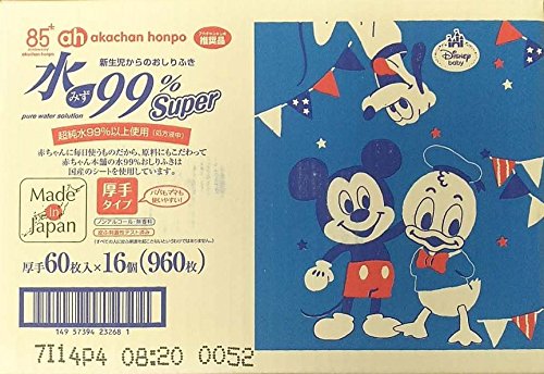 【お得な2箱】水99% Super 新生児からのおしりふき 60枚×16個 厚手タイプ ミッキー (2箱)