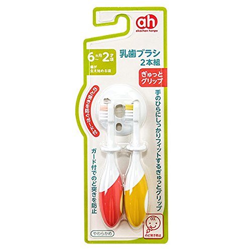 赤ちゃん本舗 のど突き防止ぎゅっと乳歯ブラシ 2本組 レッドイエロー
