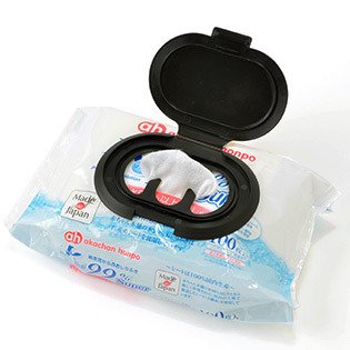 ウエットティッシュやおしりふきの取出し口に貼り付けるだけ