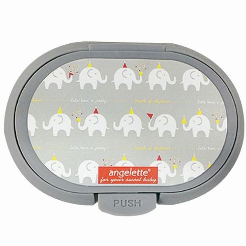 おしりふき、クリーナーシート、ウェットティッシュなどのパッケージ取出し口に貼って使うフタ。繰り返し付け外しができる粘着シール付き。ワンプッシュで開閉できる。 取出し口にストッパーが付いているので1枚ずつ取り出しやすい。 かわいいangelette柄付き。