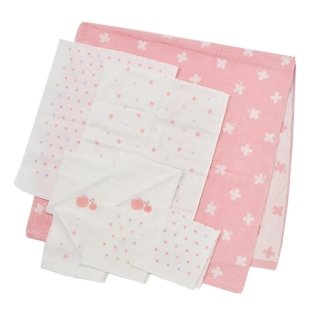 • ●セット内容=湯上りタオル×1枚、ガーゼ入浴布×2枚、ガーゼハンカチ5枚