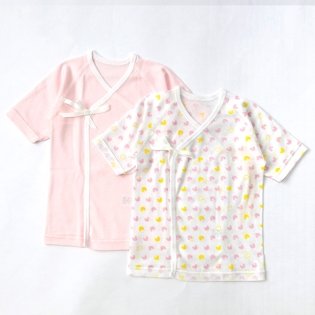 長袖短肌着2枚組 アヒル 日本製 (ピンク)