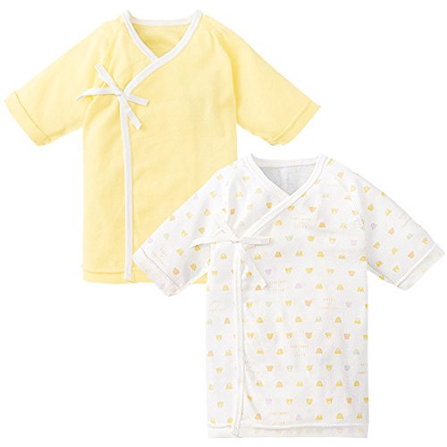 長袖短肌着2枚組 くまくま イエロー (50cm)