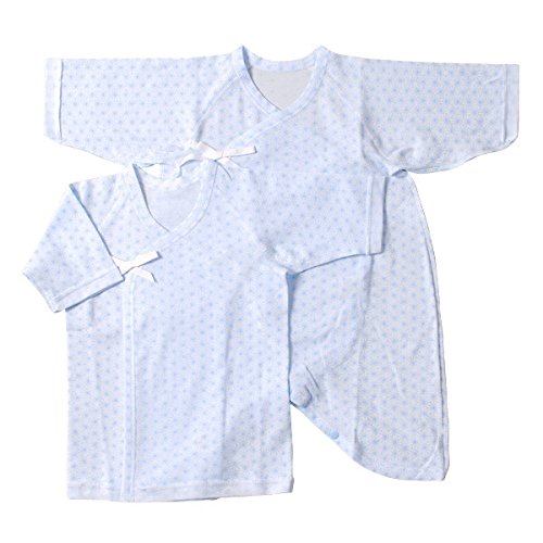 赤ちゃん本舗 麻の葉 新生児肌着2点セット 日本製 サックス