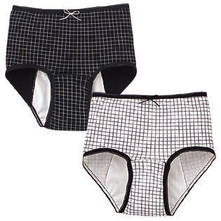 • 肌触りも柔らかな産褥ショーツ。オフホワイト×ブラックの2枚セットです。 股マチ部分は着用したままナプキン交換ができるマジックテープ式です。うしろウエスト部分まで広範囲の防水布を使用。