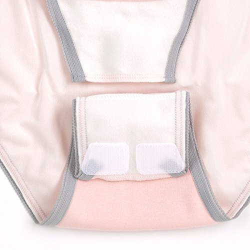 • 出産後の悪露の多い時期のために、うしろウェスト部まで広範囲の防水布をつけているので、衣類や寝具を汚す心配がなく安心です。マチ部分はナプキン交換が簡単なワンタッチテープ式です。
