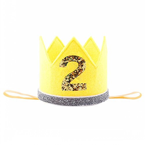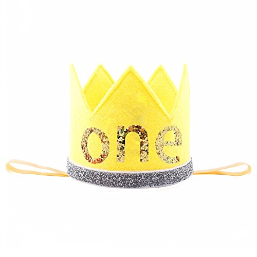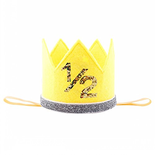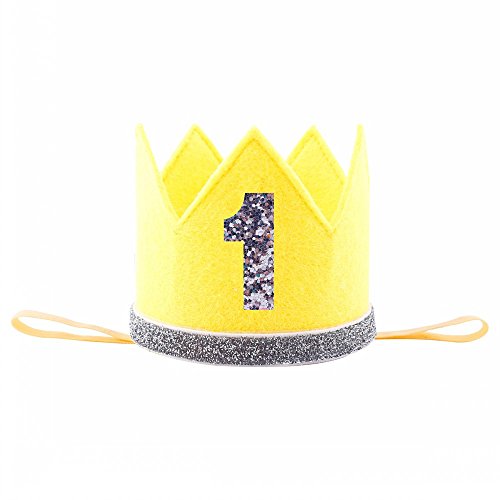 可愛いバースデークラウン 誕生日のミニ王冠 ハーフバースデー 1シール付き プリンセス 撮影 記念写真 お宮参り 結婚式 プレゼント 100日祝い ゴムバンド イエロー