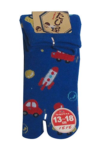 たび屋 キッズ おもちゃ ロケット くるま 柄 足袋 ソックス (日本製 子供 靴下) 13-18cm ブルー