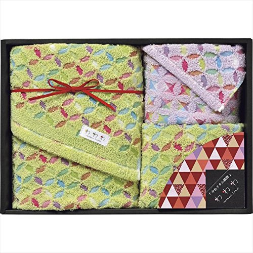 - 内容:ミニタオル:250×250mm・ウォッシュタオル:340×360mm・フェイスタオル:340×800mm×各1