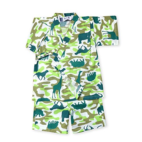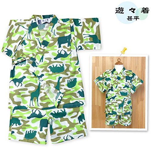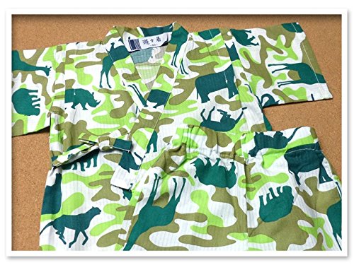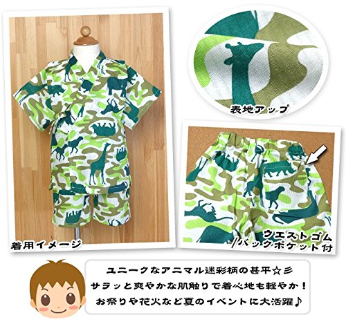 (グリーン/80cm) ベビー服 男の子 甚平 綿100% アニマル 迷彩柄 ポケット付 上下組セット 男児 ベビー