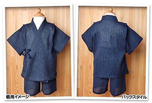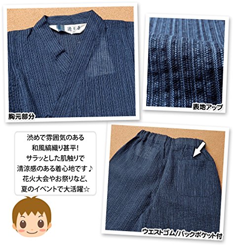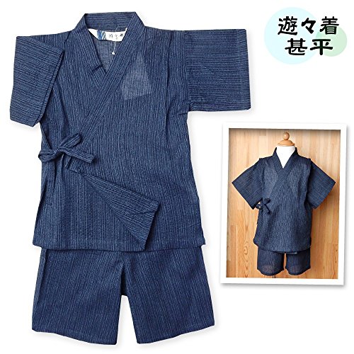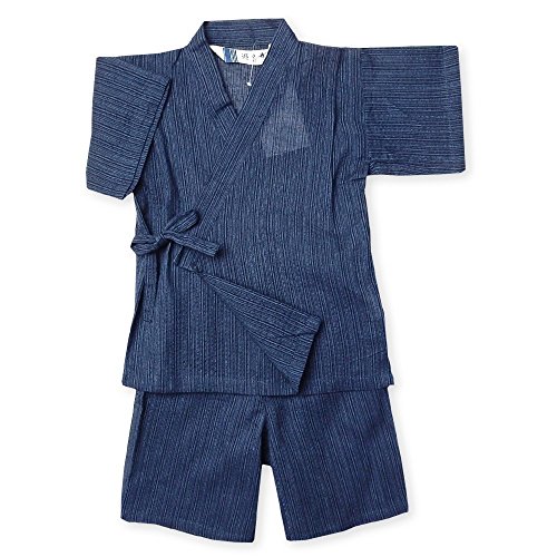 (ネイビー/90cm) ベビー服 男の子 甚平 綿100% 縞柄 和調 上下組セット 男児 ベビー