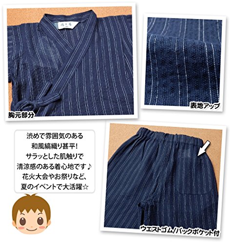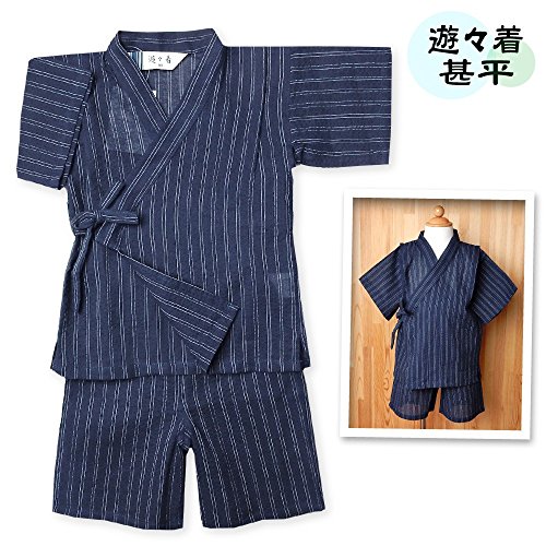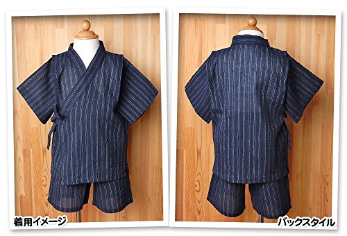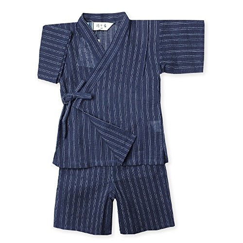(ダークネイビー/95cm) ベビー服 男の子 甚平 綿100% 縞柄 和調 上下組セット 男児 ベビー