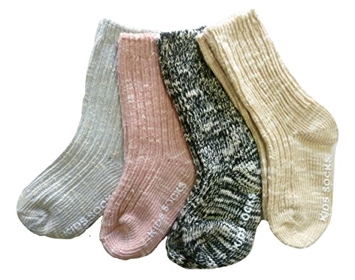 ピンク、グレー、ベージュ、ブラックの4足セットです。 1才以下のお子様にはゆとりのあるサイズになっておりますので、タイツなどと合わせてご着用ください。 サイズ:10〜13cm 8ヶ月〜2歳くらい 素材:綿、ナイロン 写真と実際の商品の色が若干異なって見える場合がございます。