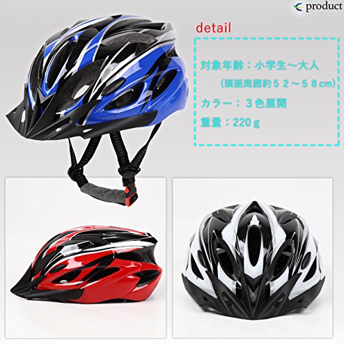 ●[対象年齢] ヘルメット(小学生ぐらい~大人:頭部周囲約52~58cm) ※当社の「大人・小学校4~6年生」の実装着にてサイズ確認しておりますが、多少の個人差があります。 / [重量] 約220g ※当ヘルメットは「幅広い年齢層を対象に設計」されており、十分な大きさまで調整可能ですので、成長盛りのお子さまから、大人まで、買い替えが発生せず安心して長期間お使いいただけ、繰り返しのご購入費用が嵩みません。 大きさ調整は、後頭部のアジャスター等にて簡単に行えます。 前面のバイザー(黒色の付属物)のお取り付けはご自由に可能です。