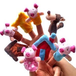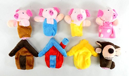 金曜日 指人形 指のドー パペットおもちゃ 知育玩具・早期教育・学習 童話 シリーズ 3匹のこぶた オオカミ 絵本 8点セット
