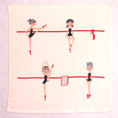 - 人気デザイナーShinzi Katoh の描いた可愛いバレエイラストのゲストタオル「レッスンバー」です。