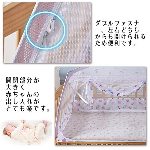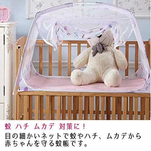 - 目の細かいネットで蚊やハチ、ムカデから赤ちゃんを守る蚊帳です。