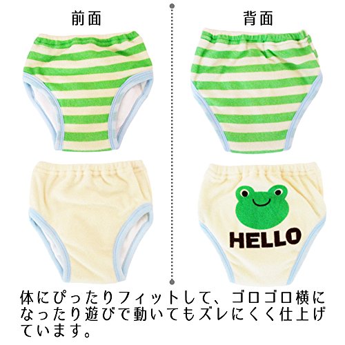 - かわいらしいデザインでおむつから幼児用下着へと橋渡しします。ガーゼを1枚お付けしております。日々の生活にお役に立てください。