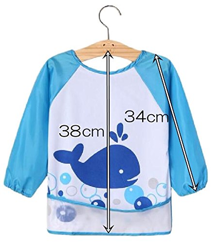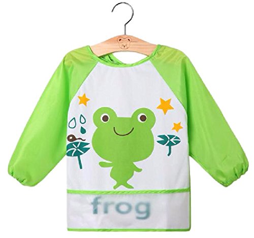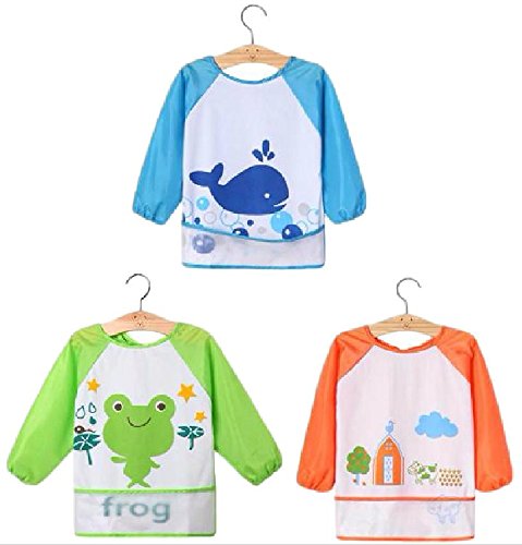 ベビー 赤ちゃん 食事用 防水 エプロン 長袖 3枚 セット ポケット 付 生き物 & フルーツ (カエル クジラ うし)