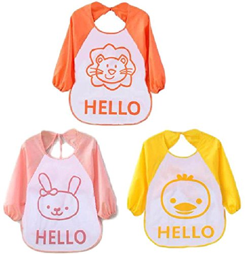 ベビー 赤ちゃん 食事 用 防水 エプロン 長袖 3枚 セット ポケット 付 かわいい 動物 柄 (ひよこ ライオン ウサギ)