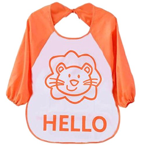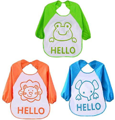 ベビー 赤ちゃん 食事 用 防水 エプロン 長袖 3枚 セット ポケット 付 かわいい 動物 柄 (ライオン カエル ゾウ)