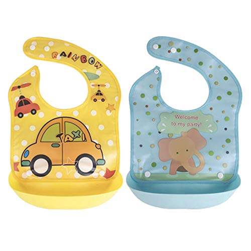 (なないろ館)お食事 離乳食 エプロン 2個セット スタイ ロールアップ ビブ 脱着可能受け皿付き 防水 ベビー よだれかけ (男の子用)