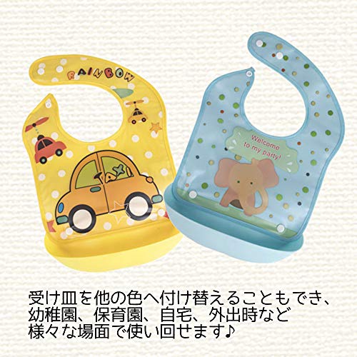 【(なないろ館)お食事 離乳食 エプロン 2個セット スタイ ロールアップ ビブ 脱着可能受け皿付き 防水 ベビー よだれかけ】