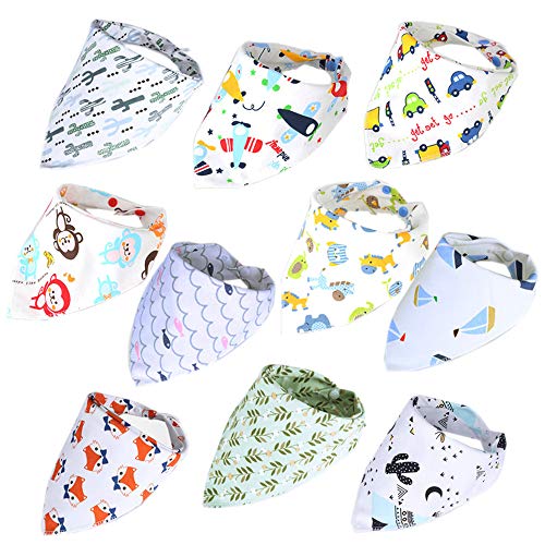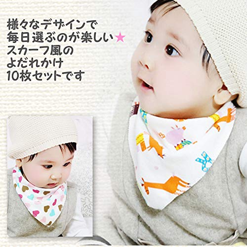 - 様々なデザインで毎日選ぶのが楽しい、スカーフ風のよだれかけ10枚セットです。