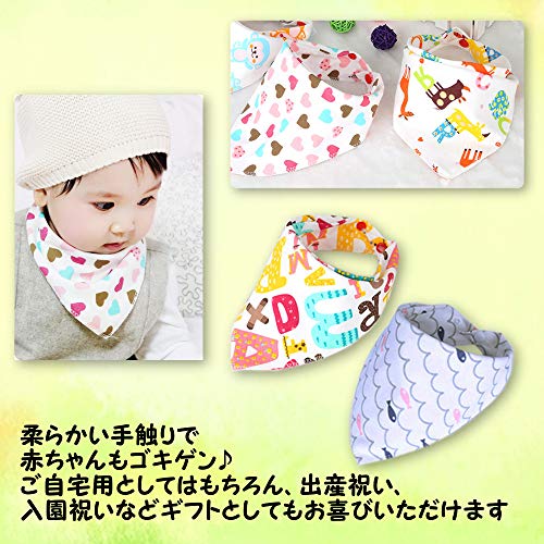 【(なないろ館)よだれかけ スタイ バンダナ お食事エプロン スナップビブ よだれカバー10枚セット 首回り調節可 コットン 綿 スカーフ風 カワイイ 出産祝い 贈り物】