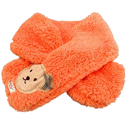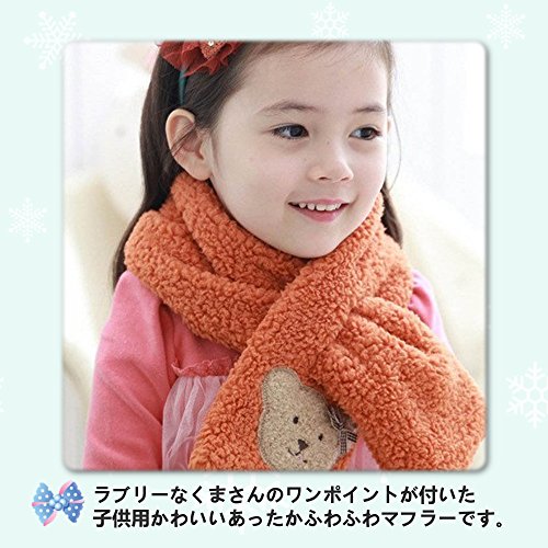 キッズ 子供用 あったか ふわふわ マフラー かわいい くまさんのワンポイント付き (オレンジ)
