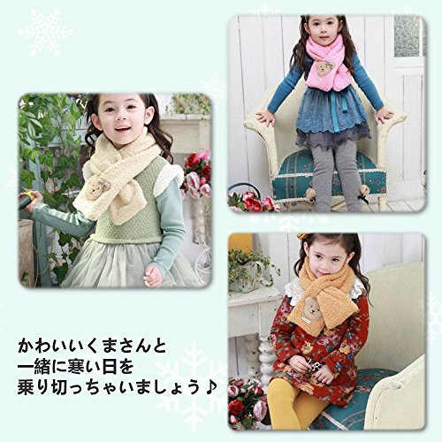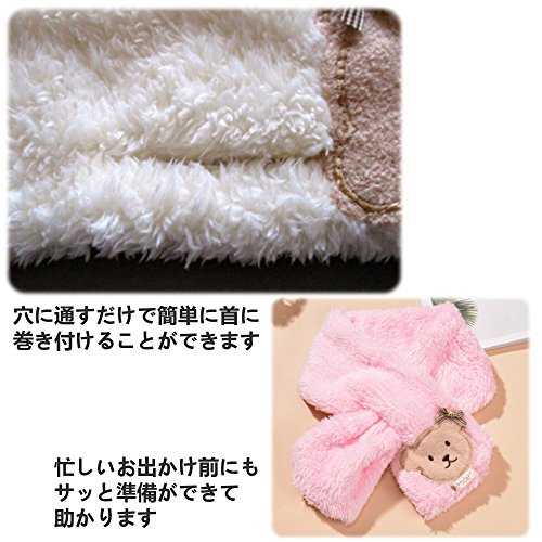 - ラブリーなくまさんのワンポイントが付いたキッズ子供用かわいいあったかふわふわマフラーです。