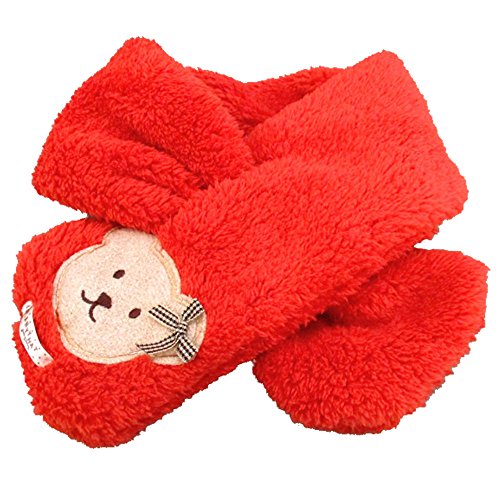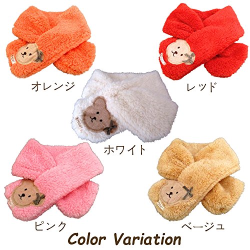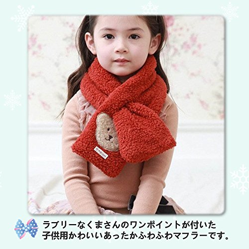 キッズ 子供用 あったか ふわふわ マフラー かわいい くまさんのワンポイント付き (レッド)