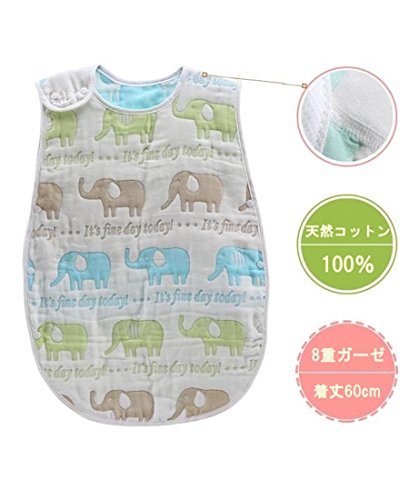 8重ガーゼ スリーパー 60cm ベビー パジャマ ふわふわ コットン 柔らかい 綿 お昼寝 寝冷え防止 出産祝いに (ゾウ)
