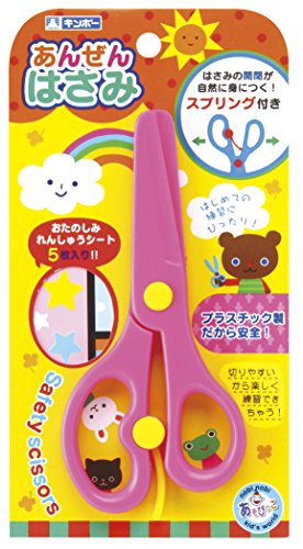 安全なプラスチック製だから、初めての練習にピッタリ! はさみの開閉が自然に身につくスプリング付き!