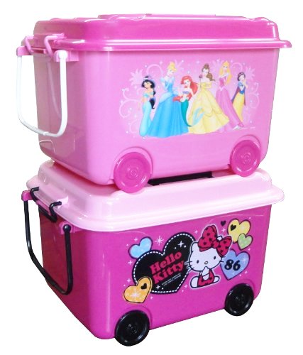 兄弟で柄違いのおもちゃ箱を重ねて置いて上手に収納!