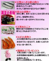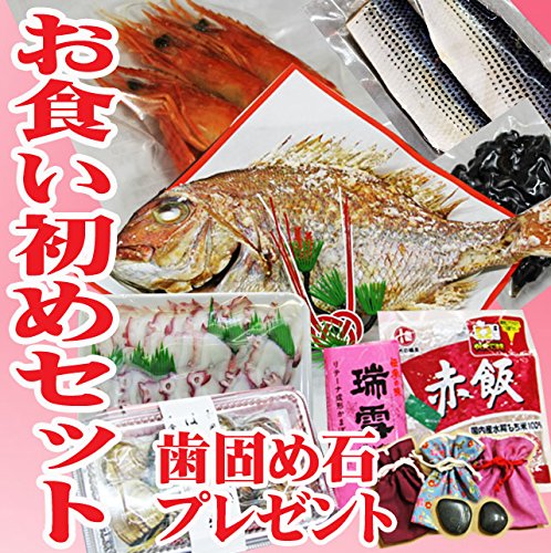 - 内容:祝い真鯛塩焼き400g(約28cm) はまぐり吸い物(4人前) かまぼこ1個180g 赤飯(2パック) コハダ酢漬け約100g 黒豆煮100g ボイルタコスライス150g ボイルエビ3尾 歯固め石(プレゼント)