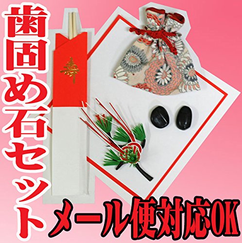 歯固め石セット (お食い初め石 着物生地巾着付き 祝箸 敷き紙 松の飾り)100日 お祝い 赤ちゃん メール便対応